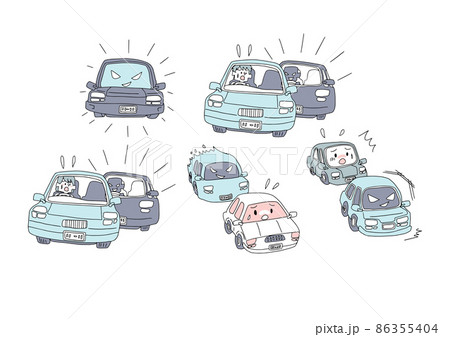 藍色汽車危險駕駛發生事故插畫素材