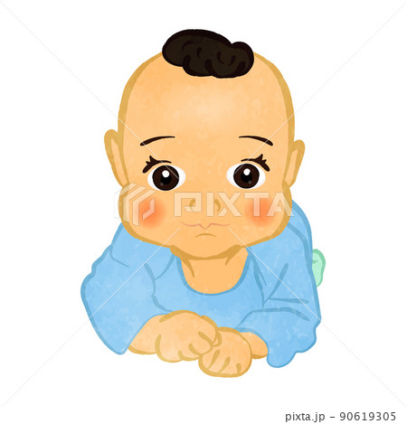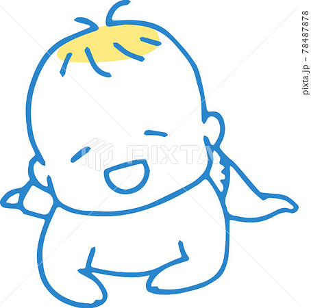 嬰兒坐著彎曲脖子的插圖(主線顏色藍色)