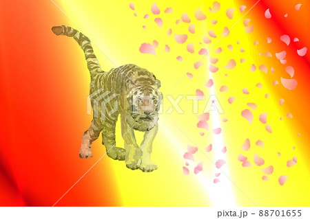 玫瑰虎、松樹、門松和絲帶 fukidashi