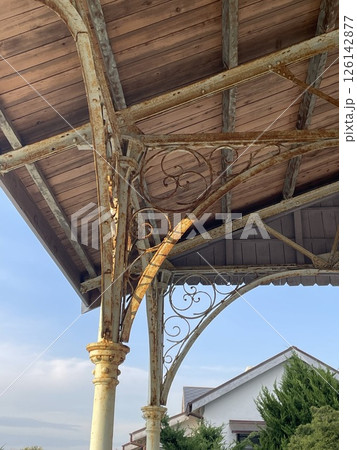 韓國生鏽的鐵柱和木質屋頂的裝飾結構|復古建築之美