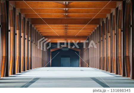 簡約木質走廊建築背景,留有文字空間