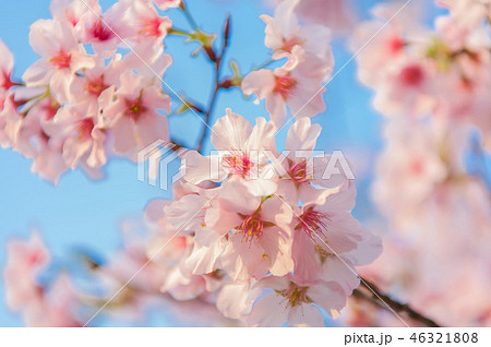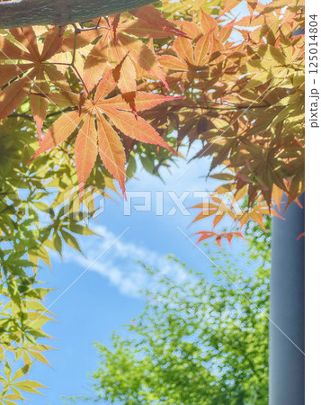 秋日背景,五彩斑斕的楓葉環繞著蔚藍的天空