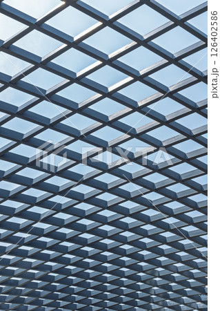 現代建築的玻璃屋頂構成幾何圖案背景