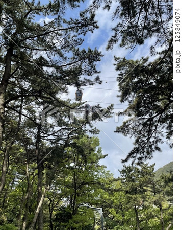 從森林裡看到的海上纜車和城市景觀