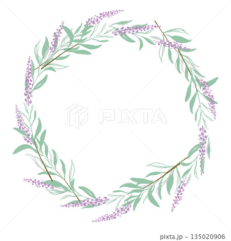 Colorful spring wreath of various flowers and twigs. A festive vector illustration for creating cards and invitations in a circle shape.