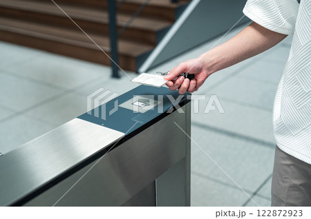 一名男子在安檢門上刷 IC 卡