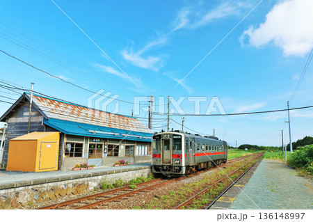 茨城縣北浦湖畔站。行駛在鹿島臨海鐵道大洗鹿島線上的列車。