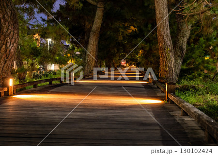 世界遺產三保松原松樹線「眾神之路」的夜景