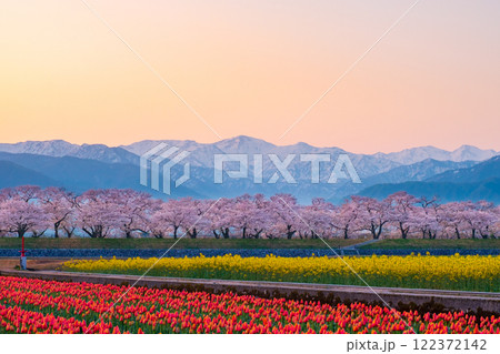 【富山縣】朝日船川春天四重奏(盛開的櫻花、鬱金香、油菜花、北阿爾卑斯山)