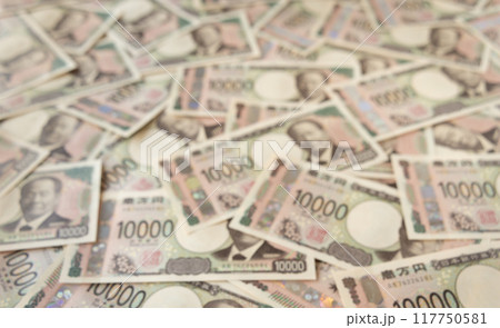 失焦的 10,000 日元鈔票現金背景資料
