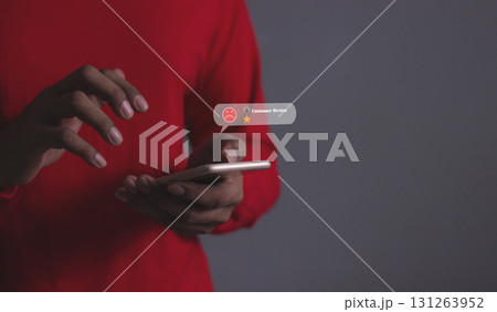Asian female customers gave it a one star rating and expressed dissatisfaction with the service. Satisfaction Survey and Customer Service Concept.
