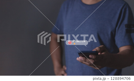 Man uses a smartphone to review and gives 1 star, with poor service results, Customer Review