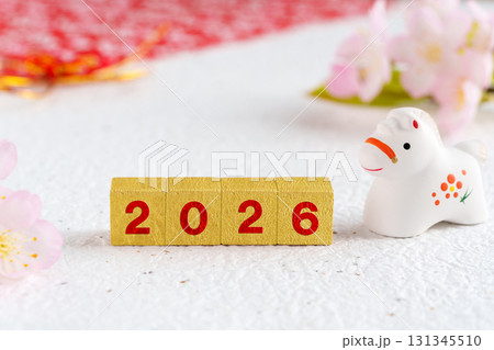 帶有 2026 和馬的生肖的新年賀卡材料