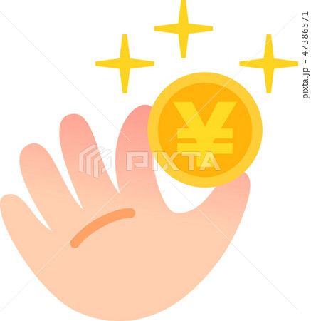 一隻手拿著硬幣的插圖