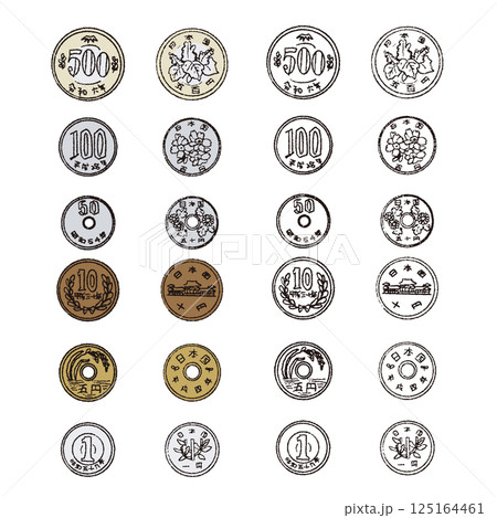 簡單的插圖,持有 100 日元和 500 日元的人的向量
