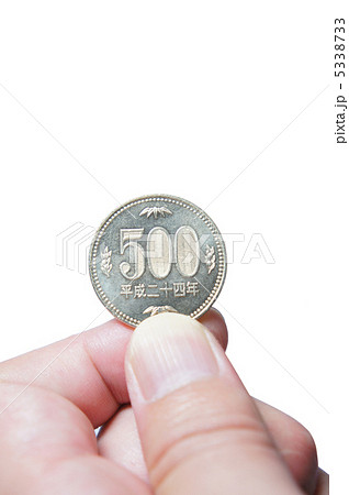 帶 500 日元硬幣和筷子的女員工 一枚硬幣午餐圖片