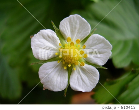 春天背景材料·草莓屋草莓葉子和花·橫向位置