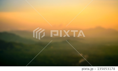 Blurred Mountain Landscape with Golden Sunrise Sky