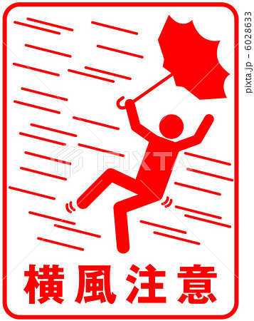 插圖顯示一輛汽車被一陣風和一棵倒下的樹困住,一輛自行車被扇動,一名行人正在疏散