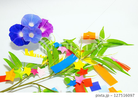 七夕/竹子裝飾和手繪插圖套條(彩色)