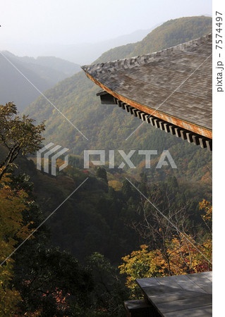 從遠處的參拜場所國寶投來堂眺望秋天的三德山三佛寺