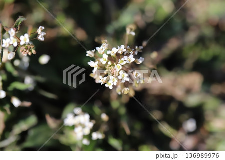 冬日田野裡盛開著白色的小薺菜花。