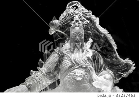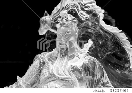 黑白 關公 神像 神明 莊嚴 宗教 打坐 思考 沈思 臉 雕像 神像 水晶 玻璃 藝術