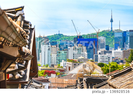 首爾:復古與現代的城市景觀:韓式瓦片屋頂與摩天大樓