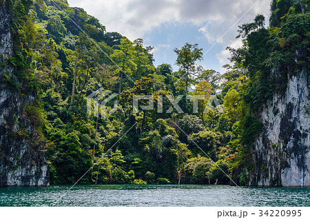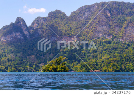 View of Khao Sok national park Cheow Lan Dam lake in Surat Thani, Thailand