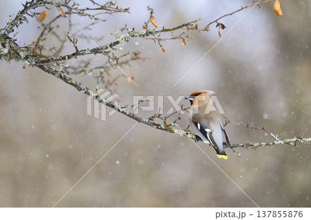 雪地裡的一群太平鳥