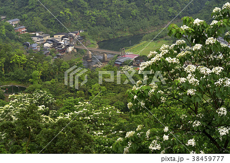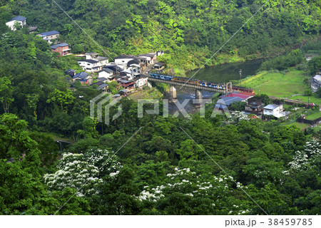 三貂嶺車站,火車,鐵道,鐵橋,平溪線,基隆河,河流,水,山,新北市,瑞芳區,油桐花,四月雪,五月雪