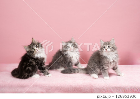 三隻挪威森林貓小貓在一個彩色盒子裡