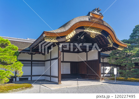 秋天的京都皇宮,紫神殿在藍天的襯托下閃閃發光