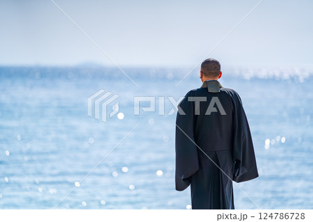 僧侶在海中舉行追悼會的海洋散射圖像