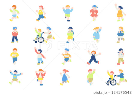 孩子們快樂奔跑的平面插圖(集)和圖標