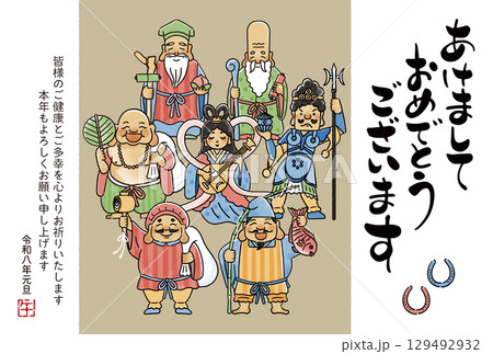 2026年馬年卡 - 簡單可愛的七福神插圖