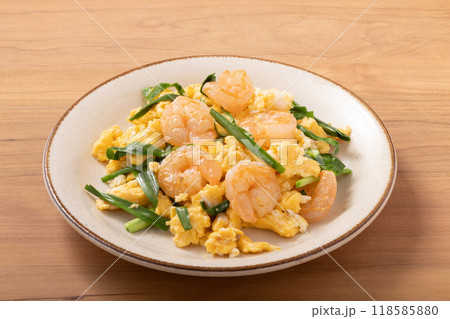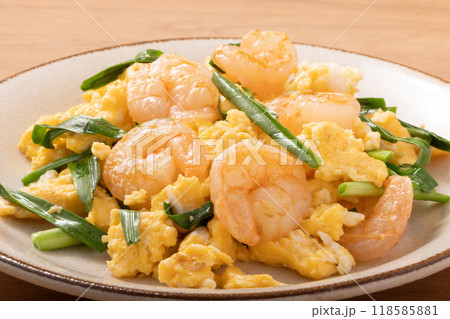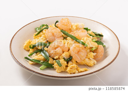 中國上海菜,炒韭菜雞(炒蝦和大蒜雞蛋)