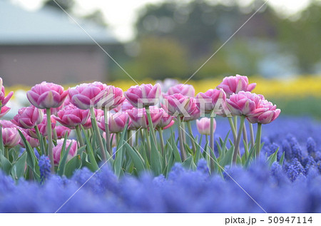 背景上的鬱金香人(北海道Kamiibubetsu-cho)