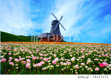 鬱金香場和風車(北海道Kamiibubetsu-cho)