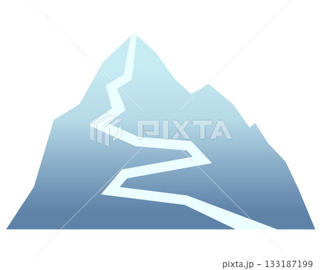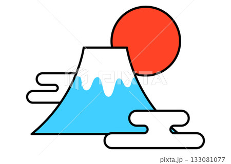被大雲覆蓋的富士山(來自朝霧高原)的水彩插圖