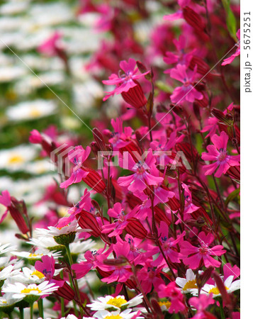 春天花園裡盛開的粉紅櫛石竹 (Silene pendula)