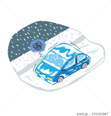 一輛汽車被雪覆蓋。降雪和汽車。向量圖