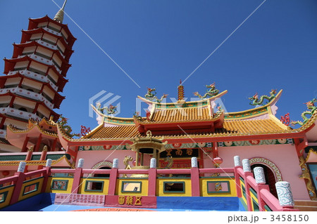 寺廟塔樓在盛夏的藍天下閃閃發光