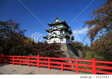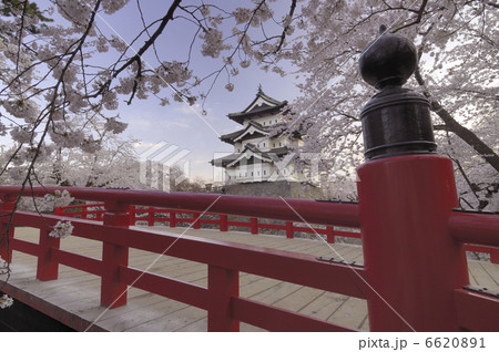 弘前公園本丸地鐵橋非法朱紅色和花卉raillos由月光對比照亮