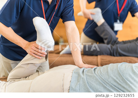 男脊椎按摩師為女病人按摩腿部