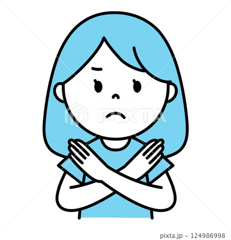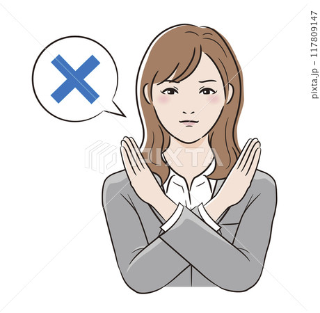年輕女子做出NG手勢/拒絕的插圖(十字架標記,上半身)