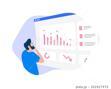 A businessman is studying a problem and ways to solve it. Wrong business model, unprofitability and inefficiency. Failed project. Testing. Risk management. Correction of errors and shortcomings.