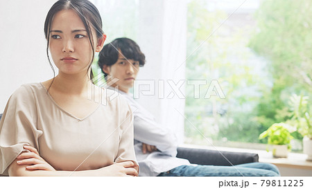 一對年輕夫婦背對背的「人工智慧生成圖像」插圖