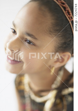 女孩的慶祝形象·可愛的連衣裙身體·紅色腰帶背部垂直位置