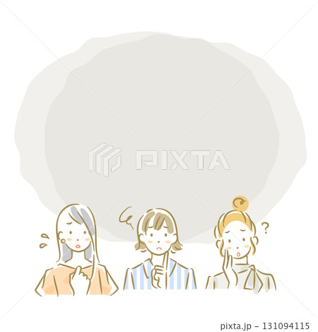 畫框裡畫著三位陷入困境的年輕女子。一幅柔和、時尚的線條插畫。